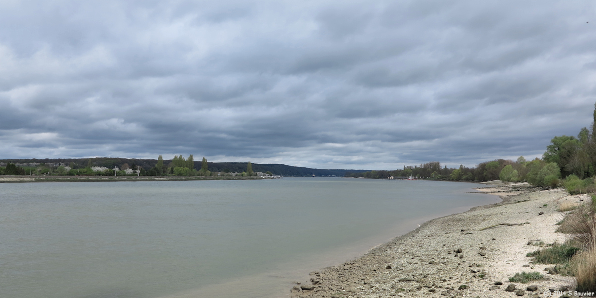 La Seine vers l'Amont, Mesnil s/s Jumièges à gauche, Bac en arr.