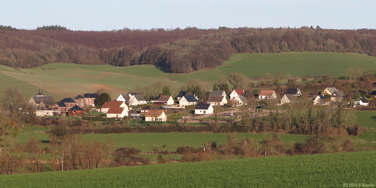 Village, Eglise, Massif de Pimont en arrière, Forêt d'Eawy